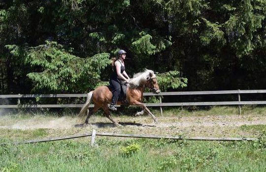 She has good gaits and is ready to start intermediate competitions with potential for more. She has five gaits, but we only tried her pace a few times. She has a great canter and knows all basic dressage exercises. She is light on the reins and is always up for a nice tour on the track or in the forest. She can be ridden of both – trained riders and beginners.